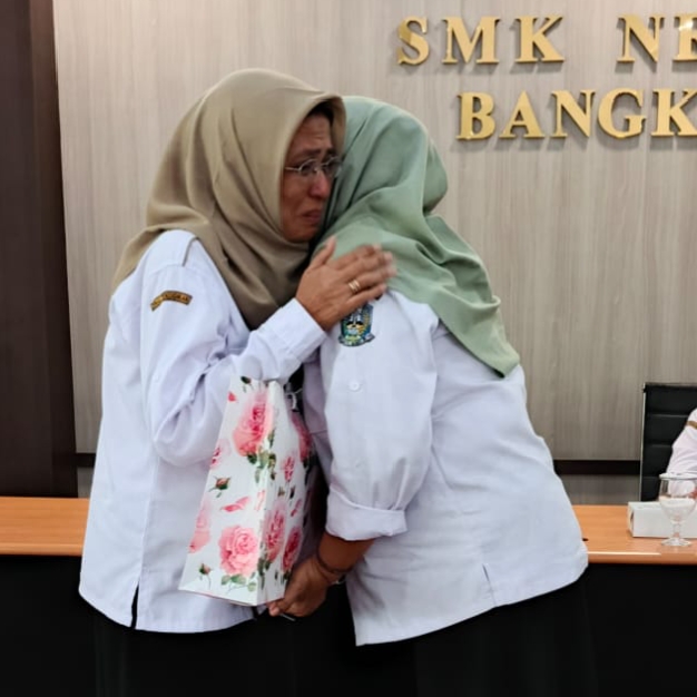 Acara ditutup bukan hanya dengan jabat tangan formal, melainkan dengan rangkulan hangat kekeluargaan, menandai bahwa meski kepemimpinan berganti, ikatan persaudaraan di SMKN 1 Bangkalan tetap abadi.
